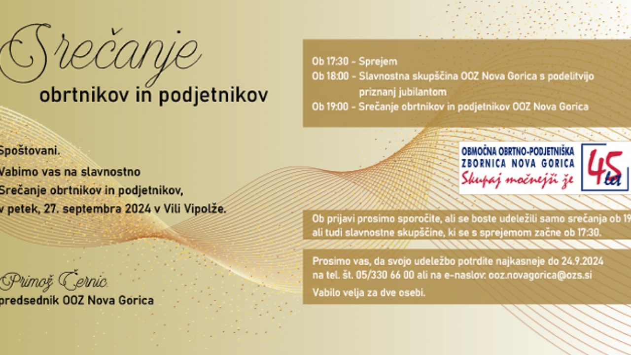 Svečano, predvsem pa zelo podjetniško in obrtniško obarvano, se vsako leto posvetimo našim članom z dogodkom, kjer ogromno prostora namenjamo prav povezovanju, druženju, obenem pa v slogu proslavimo z vsemi tistimi, ki z letošnjim letom beležijo okroglo obletnico dejavnosti. Vse to se bo letos dogajalo v Vili Vipolže in ker se dogodek že pošteno bliža, vas vabimo, da se nanj prijavite. Dobra hrana, glasba, druženje, barvitost programa in lokacija, so nedvomno sestavine, ki kličejo po udeležbi. Bodite ta dan z nami tudi vi! Prijava žal ni več možna.