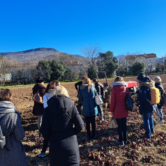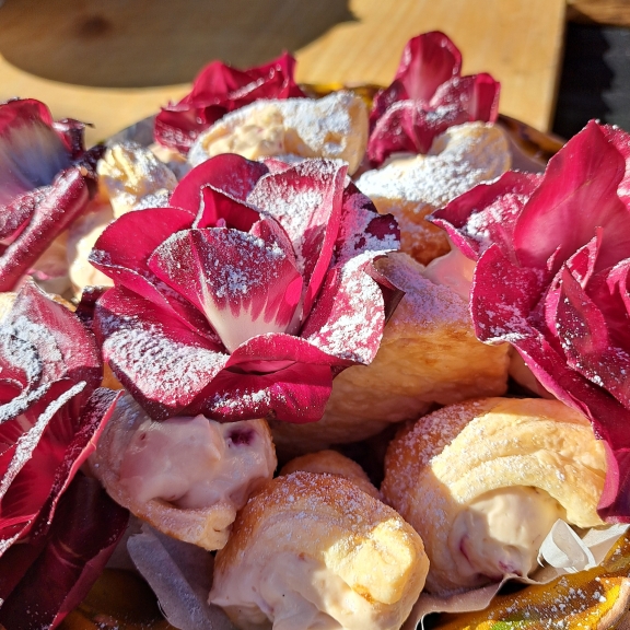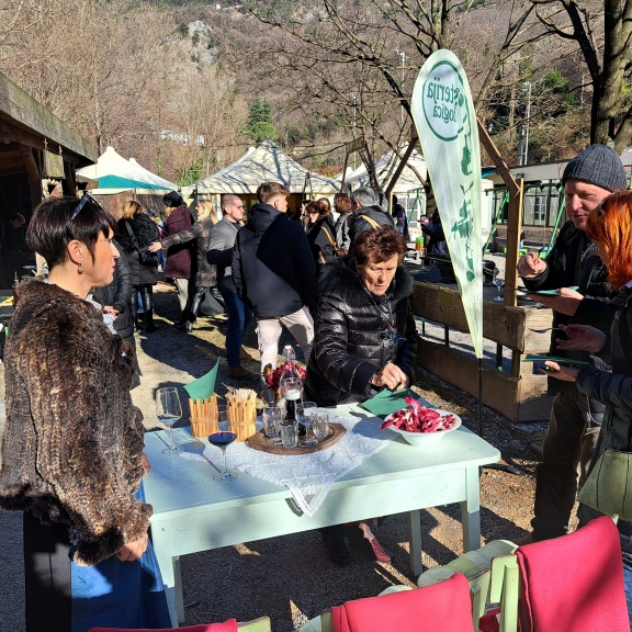 Dogodek so gostinci zasnovali izključno za novinarje, s ciljem, da njegovo ime seže v daljno slovensko vas. In kar je bilo najlepše, je prav slikovito predstavljena zgodba, za katero je med drugim poskrbela tudi Nika Šuligoj. Začeli smo na Trgu Evrope, kjer je predstavila povezavo med solkanskih radičem in novogoriško železniško postajo, s pomočjo katere je ime radiča segla tudi onkraj goriških polj. Pot se je nadaljevala na solkansko polje, kjer sta nam Teja in Boštjan Koršič razložila celoten potek pridelave te avtohtone rože. Sledil je obisk podjetja Biolab na italijanski strani, kjer nam je lastnik, Massimo Santinelli, zaupal vse izdelke, ki jih ustvarjajo iz radiča, po italijansko znan kot La rosa di Gorizia.